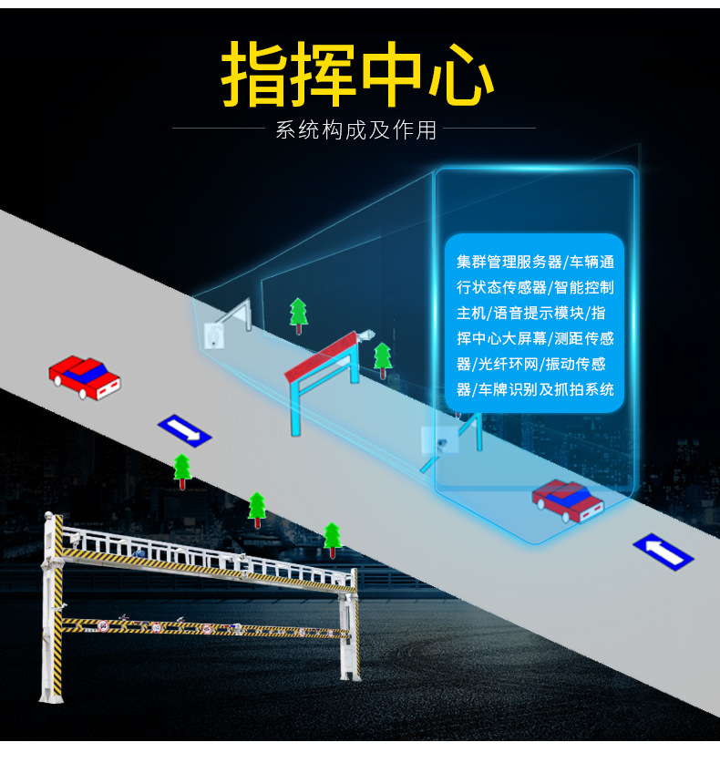 集群管理功能:管理通行證系統數據;控制中心遠程布控車輛;指揮現場人員,勸 離違法司機; 通過集群組態管理,一臺電腦同時管理多個點位和幾百個門架 ;
